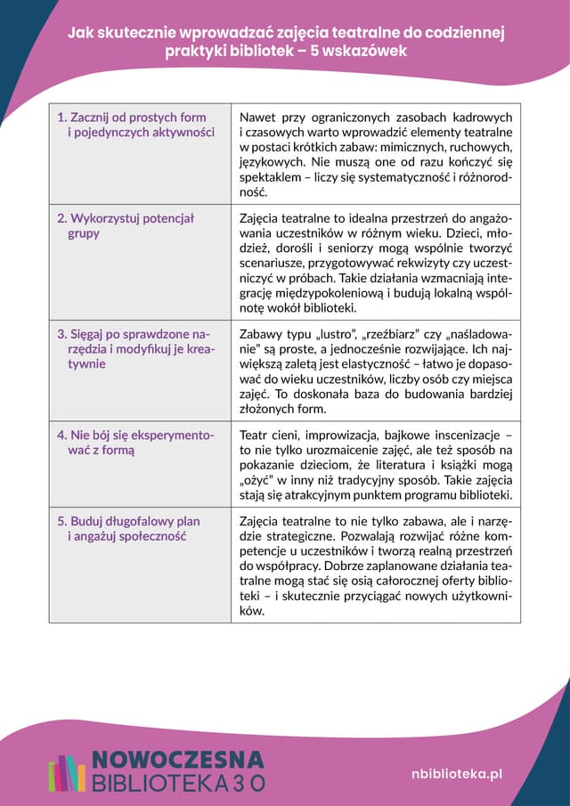 Ściąga: Jak skutecznie wprowadzać zajęcia teatralne do codziennej praktyki bibliotek – 5 wskazówek