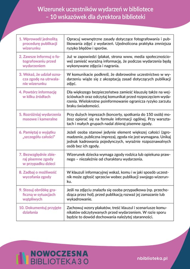 Ściąga: RODO – jak chronić wizerunek uczestników wydarzeń w bibliotece: 10 wskazówek dla dyrektora biblioteki